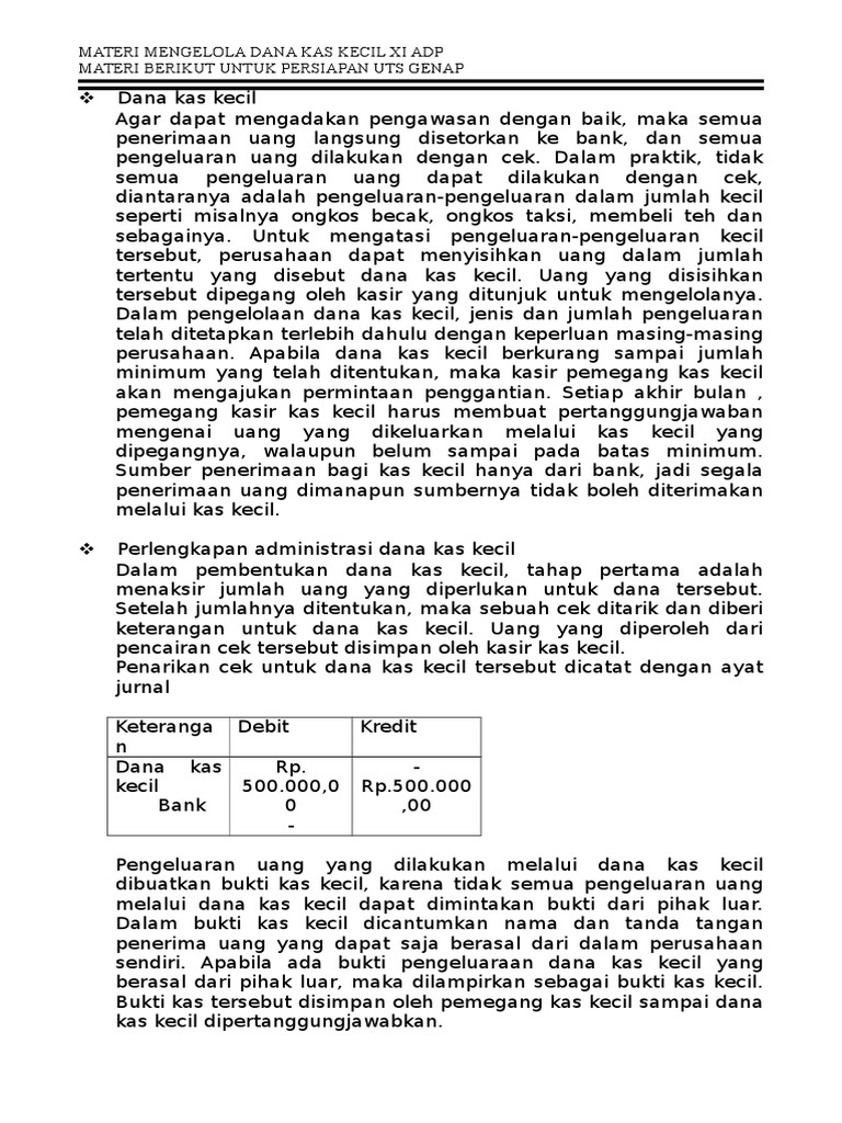 Related : Jenis Pengeluaran Dana Kas Kecil / 1.000.000,00 dengan menarik cek sebesar rp..